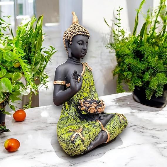 Product Code = 9991166630 , Material : Brass , Colour : Multi Colour , Dimension : Height : 16 inches X Width : 12 inches X Depth : 8 inches, Weight : 10.2 kg , Included component: 1 Buddha , Care instruction : Clean with a dry & soft cloth