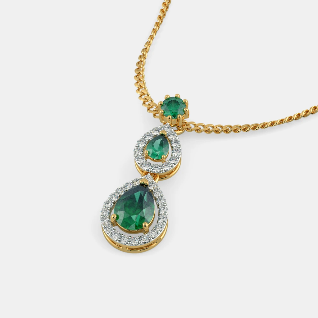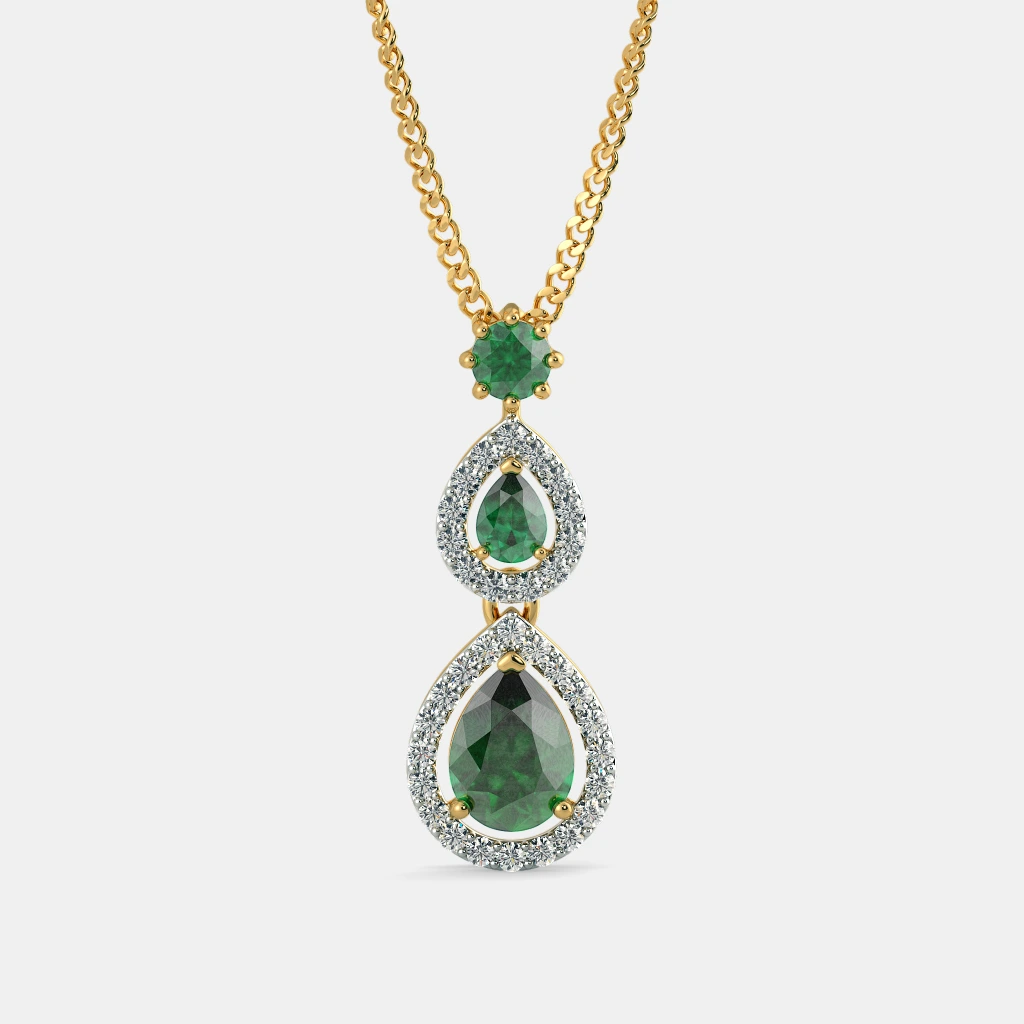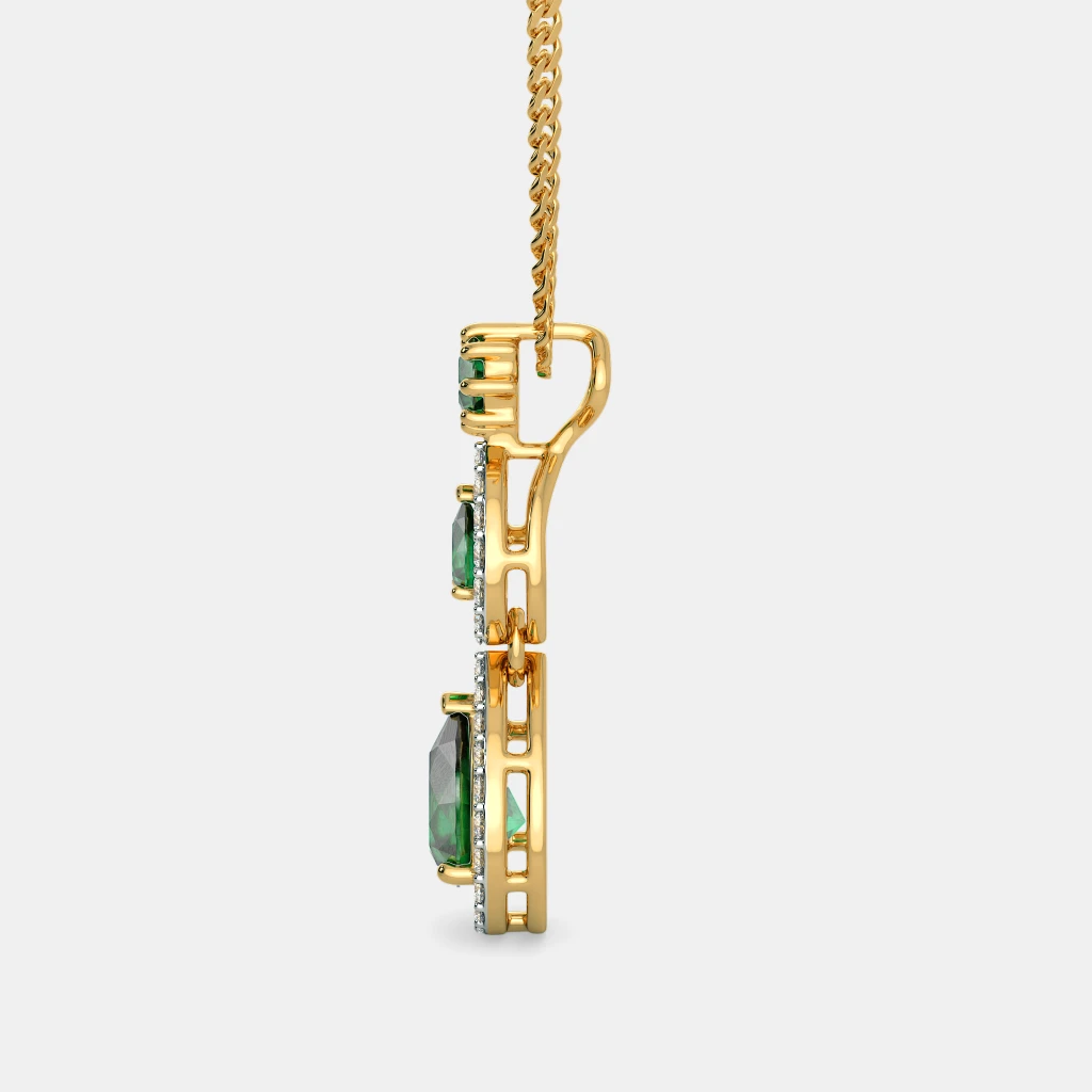 Diamond And Simulant Emerald Pendant In 18Kt Yellow Gold (1.725 gram) with Diamonds (0.2640 Ct)